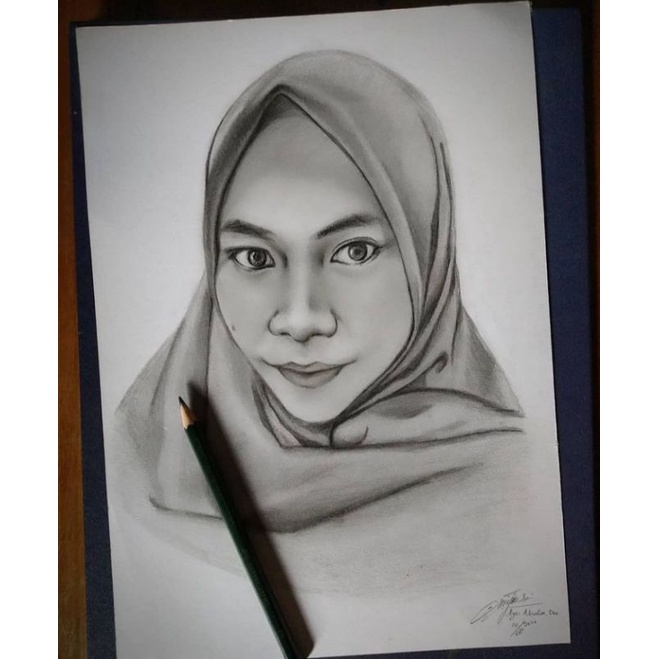 Gambar Lukisan Orang Berhijab - Jual Lukisan Wajah Ukuran A4 Indonesia Shopee Indonesia